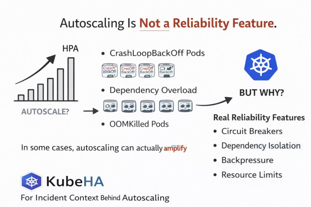 Many teams think enabling HPA makes their system resilient. It doesn’t. Autoscaling solves capacity problems, not system failures. For example: • If your application crashes → HPA will scale more crashing pods• If a dependency is slow → HPA scales more pods waiting on that dependency• If memory limits are wrong → HPA scales more […]